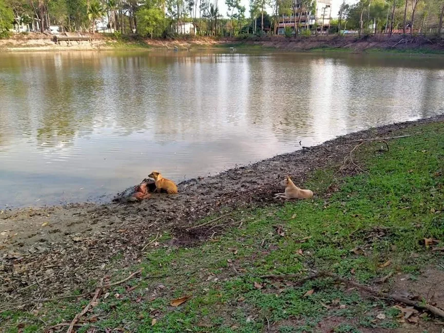 Een lokale reiziger, Ake Srisuwan, legde een ontroerend tafereel vast in Nepal: twee honden die trouw naast een vrouw stonden terwijl ze vredig lag te slapen bij de rivier.